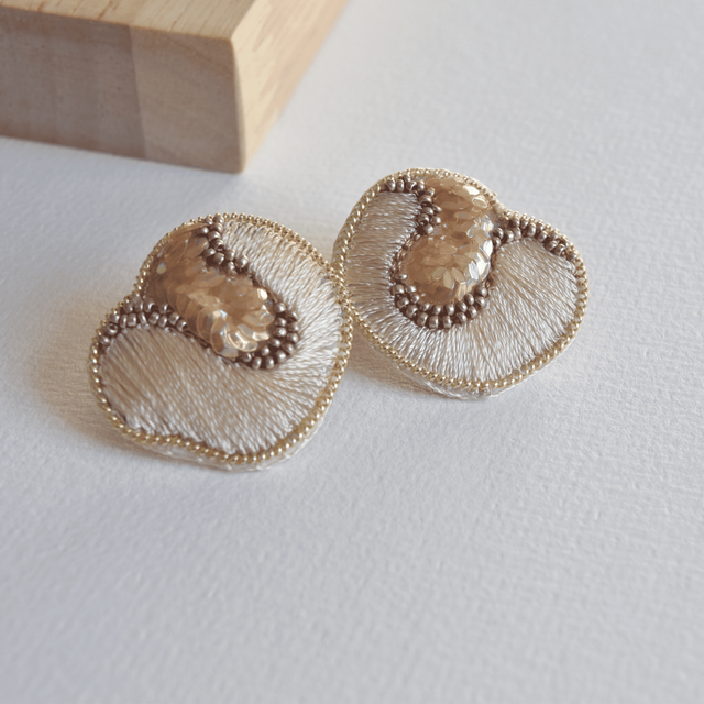 Chaque bijou est brodé à la main par mes soins dans mon atelier et est accompagné de sa boîte de rangement.